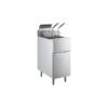 La Frymaster GF14 integra quemador Master Jet con deflectores metálicos que crean amplia área de transferencia de calor para recuperación rápida en olla abierta de 20 litros, logrando producción continua de 28 kg papas fritas/hora o equivalente en pollo rebozado, mientras la zona fría profunda atrapa sedimentos sin carbonizarlos para extender vida útil del aceite. Control millivolt con sonda de temperatura duradera regula automáticamente 50-200°C sin conexión eléctrica, y válvula de seguridad corta gas ante fallo de llama con diseño de olla fácil limpieza y patas de 15 cm ajustables para pisos irregulares. Frente, puerta y olla en acero inoxidable con lados galvanizados anticorrosión facilitan higiene NSF diaria, con colgador de canastas sobre la chimenea, rejilla soporte y 2 canastas gemelas incluidas para frituras múltiples. Compatible con gas natural (20 mbar) o licuado (28 mbar) Perú/Chile/MX, cumple CSA/NSF para servicio continuo en pollerías profesionales.