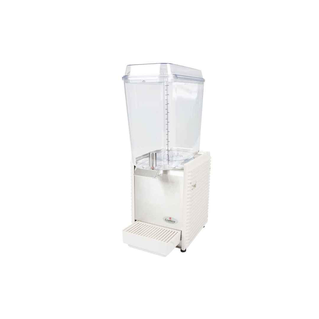 La Crathco D156-4 es un dispensador de bebida premezclada fría de la línea Classic Bubbler, con una tolva de 5 galones (18,9 litros) en policarbonato transparente montada sobre una base con panel frontal de acero inoxidable, paneles laterales plásticos y bandeja de goteo plástica desmontable para facilitar la limpieza. Su sistema de ingeniería combina un evaporador de alta eficiencia con una unidad de refrigeración de 1/6 HP (R134a) y agitación por impulsor magnético sumergido, lo que asegura un enfriamiento rápido y uniforme del producto hasta el punto de dispensado. Con certificación NSF/ANSI 20 para productos lácteos y operación a 220–240 V / 60 Hz, ofrece una solución robusta para puntos de venta que quieren dispensar jugos, aguas frescas, tés o bebidas isotónicas con temperatura estable y presentación clara durante toda la jornada.